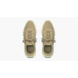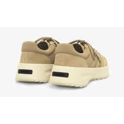 Men's lifestyle trainer from the adidas Originals x Fear of God Athletics collaboration, Los Angeles Runner silhouette in Clay colourway. Full premium suede and ripstop upper with tonal suede overlays, Three Stripes on the quarter panel, padded tongue, and lace-toggle closure. Chunky EVA midsole with Fear of God logo embossed at the heel. Lifestyle use.