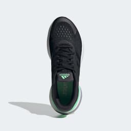 Men's road running trainer from adidas Performance, Response Super 3.0 model in Black/Linen Green colourway. Features a breathable mesh upper, Bounce midsole with Bounce+ underfoot cushioning, Geofit padded collar, TPU heel support, and rubber outsole. Made with at least 50% recycled content. Neutral running use.