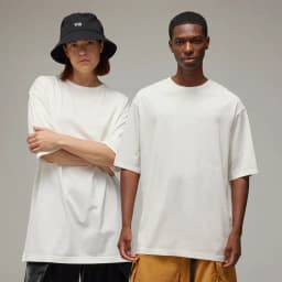Unisex short-sleeve T-shirt from adidas Y-3, boxy oversized fit. Made from soft cotton jersey with Better Cotton sourcing, ribbed crewneck collar, and a relaxed silhouette that drapes over the body. Minimalist Y-3 branding. Lifestyle use.