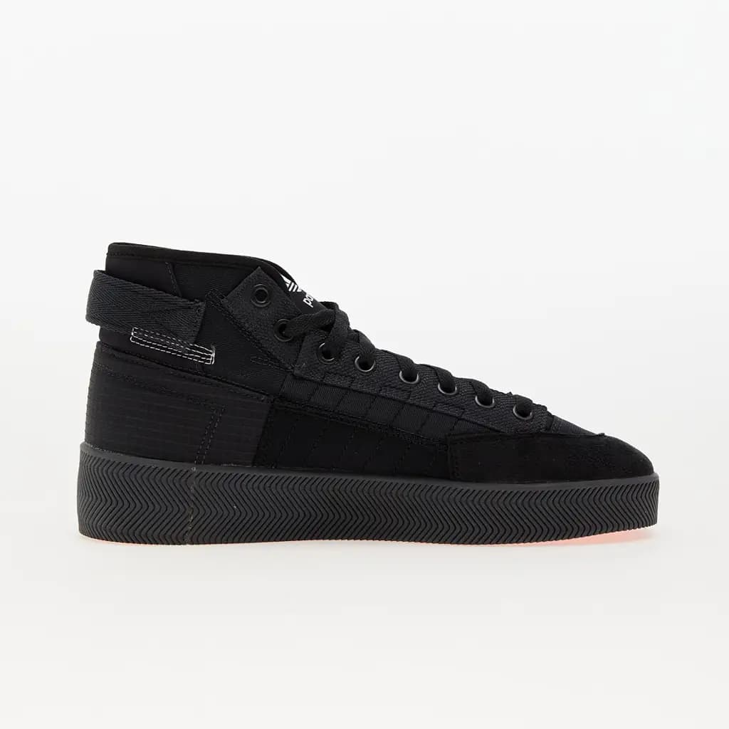 High-top trainer from adidas Originals x Parley, Nizza Hi silhouette. Upper made from a technical yarn containing at least 50% Parley Ocean Plastic (the remaining 50% is recycled polyester). Features the classic '70s-inspired silhouette with geometric stitch detailing. Cork and textile lining, natural rubber outsole. Sustainable lifestyle use.