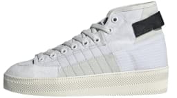 Unisex high-top trainer from adidas Originals x Parley, Nizza Hi silhouette in Cloud White. Upper made from a technical yarn containing at least 50% Parley Ocean Plastic (the remaining 50% is recycled polyester). Classic '70s silhouette with geometric stitch detailing and natural rubber outsole. Sustainable lifestyle use.